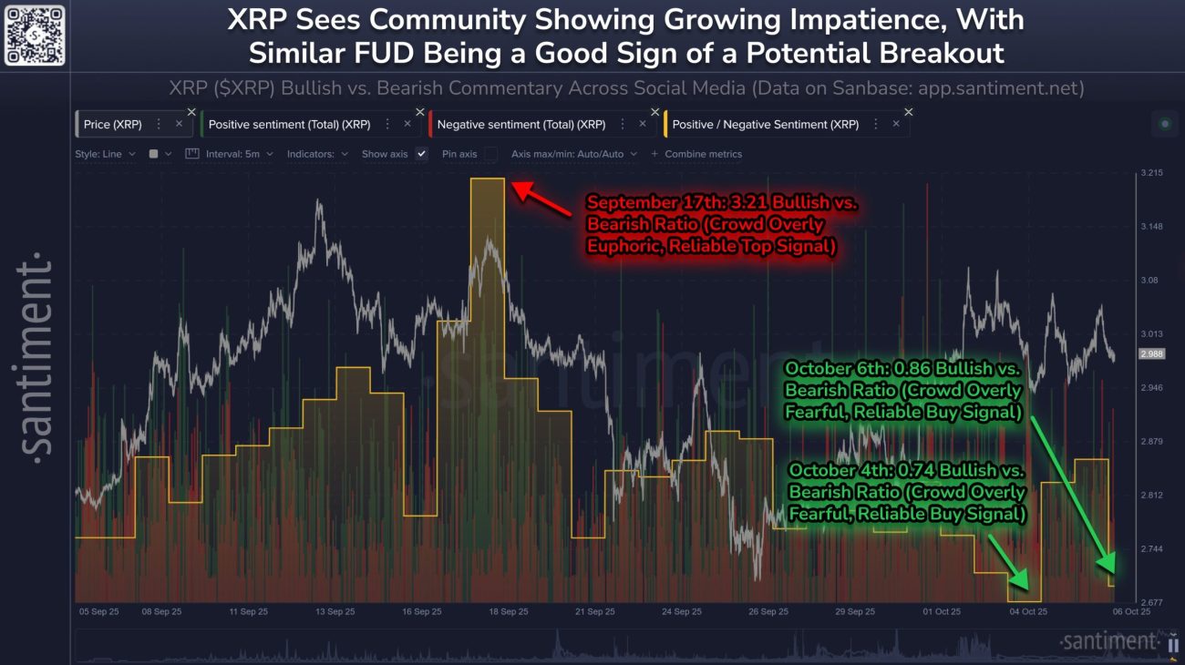 08 اکتبر ارز دیجیتال XRP sees highest ‘retail FUD’ since Trump tariffs: Is a major sell-off next? اکتبر 8, 2025 توسط زیمار 0 دیدگاه Key takeaways: Santiment data shows rising fear among XRP traders, a pattern that previously preceded a 125% rebound. XRP’s triangl...ادامه مطلب